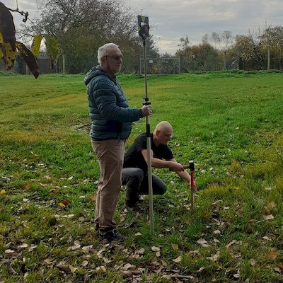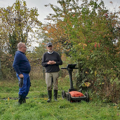 Doch das sollte sich nun möglicherweise ändern. Auf Initiative der Gesellschaft Heimat und Geschichte Trebur e. V. wurde gemeinsam mit dem Verein terraplana – Gesellschaft für Archäologie im Hessischen Ried e. V. beschlossen, mithilfe moderner geophysikalischer Methoden dem Geheimnis von St. Alban buchstäblich auf den Grund zu gehen. Dankenswerterweise erteilten sowohl der Grundstückseigentümer, Herr Ewald, als auch Herr Becker vom Landesamt für Denkmalpflege – hessenARCHÄOLOGIE ihre Genehmigung.